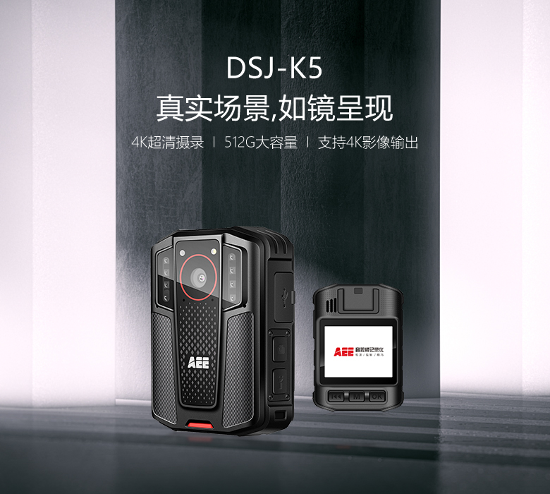 AEE DSJ-K5執法記錄儀采用新一代高性能主控芯片,最4k全高清視頻分辨率,擁有動態2160P/30幀攝像,拍照可達4800萬像素,支持紅外夜視功能;3000mAh內置鋰電池,拍攝時長可達12小時;IP68防護等級和6米防跌落設計,歷史軌跡查詢